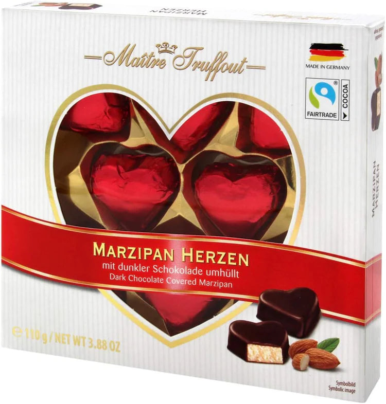 Dark Chocolate Marzipan Hearts 110g - Christmas Gifts, Valentine Gifts, Mothers Day Gifts