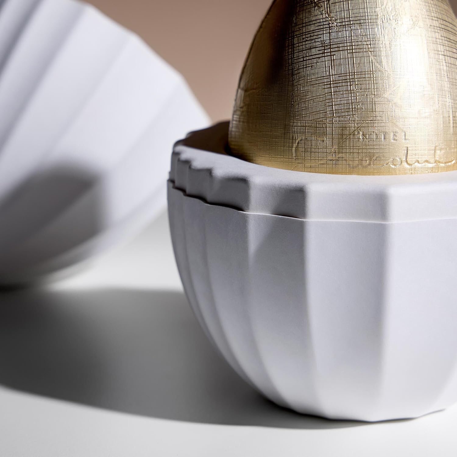 - Presented in a recyclable paper pulp eggshell inspired by the shape of a cacao pod.